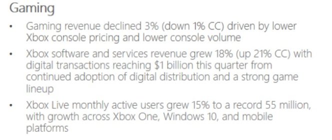 Their financials are MAUst impressive but their xbox dividiomis not.  I imagine the number of gold subscribers is steadily falling since the halcyon 360 days.